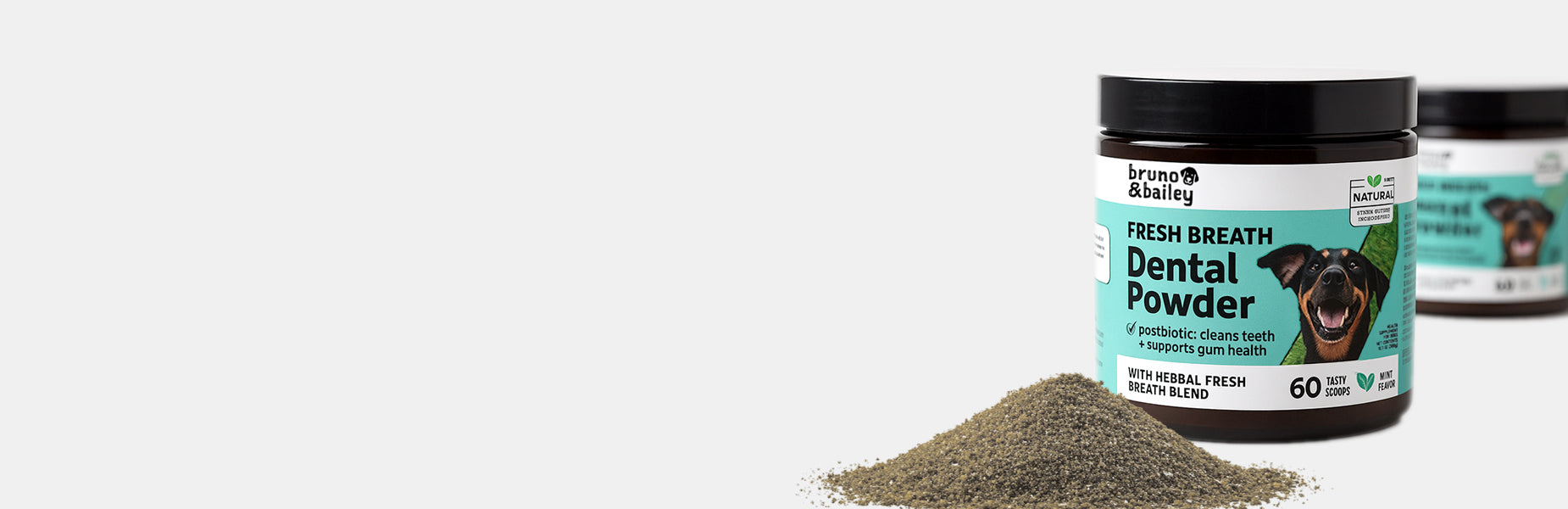 Brushing your dog’s teeth can be a daily struggle. Simply mix Fresh Breath Dental Powder into your dog's food to freshen their breath and support good dental health without brushing.